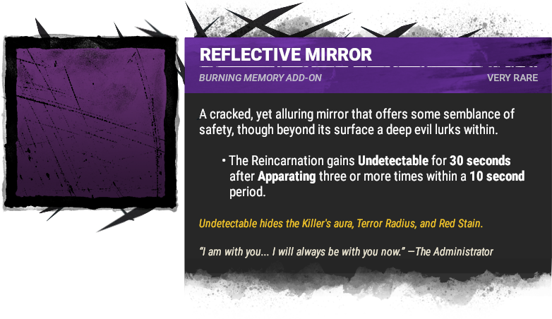 Originally "You" was never meant to be an add-on, and instead The Polaroid was going to be the "Entity gift"/iridescent add-on, but the idea of having an add-on which was a direct tie and reference to the lore and how the Entity would take control was far too tempting to try. In addition, there's a not-so-hidden 50 BLESSINGS logo in the mask's design, as well as a "sealed mouth" to show the forced silence of Jacket, removing the freedom of choice to remain silent.