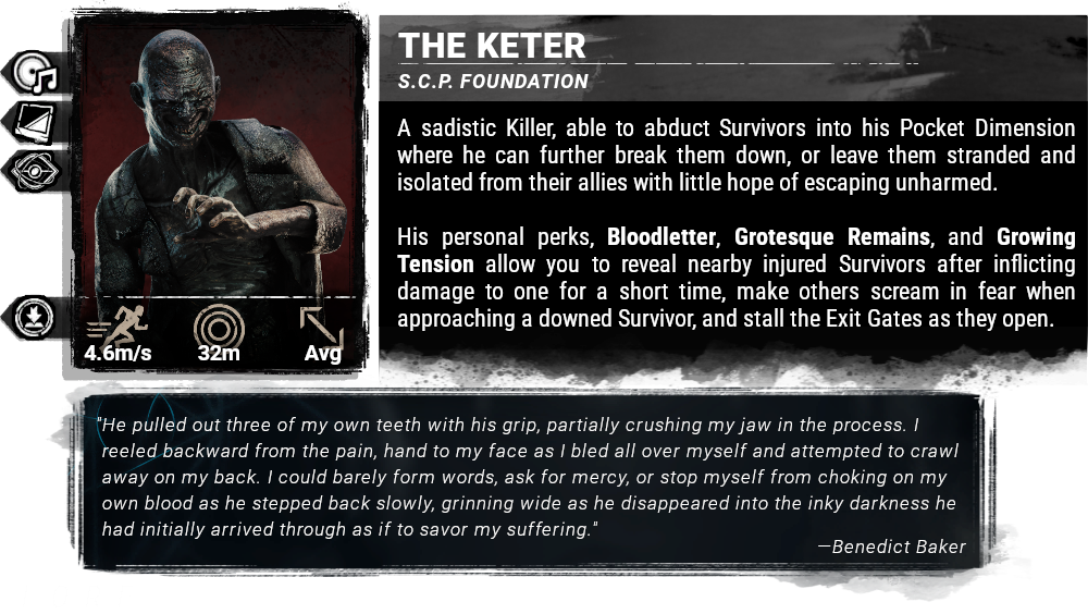 Starting in late 2019, I made my first rough concepts. The icons were bad, the balance was horrible, but I enjoyed it.I kept making icons and eventually got in contact with Rarithlynx, who used my icons for a video he made of Springtrap in a Dead by Daylight lobby. It was cool, but I asked if he could credit me for my work since I wasn't listed anywhere. He was nice about it and soon after he presented the idea of doing a gameplay video about an Alien chapter. Thus began the Dead by Daylight Community Concept Team.Since then, I've had this website and consistently updated it with both new and old designs, updated my old work, and grown a community around it. The concepts on this site are less about pure fanservice but to show how cool it would be to have something you're not familiar with, to convince people that maybe because they don't like something doesn't mean it can't be adapted or added in a cool way. I believe putting an immense amount of effort into something like this shows others how valuable it can be and can change the conversation around certain additions to the game for both the fans, BHVR themselves, and even those license holders.